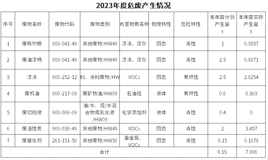 玻璃钢化装备分公司2023年度危废信息公示